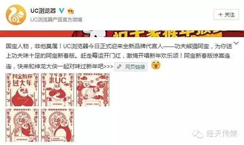 前期的一整套傳播“組合拳”,有效激發了用戶對于UC浏覽器阿寶新年(nián)版和功夫熊貓3的關注,在各條渠道内此起彼伏的熱(rè)烈探討(tǎo)中,UC和功夫熊貓阿寶又進一步爲這場線上娛樂的參與者們提供了更大(dà)爆點。