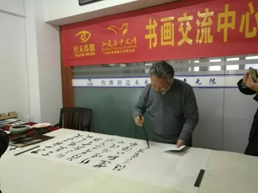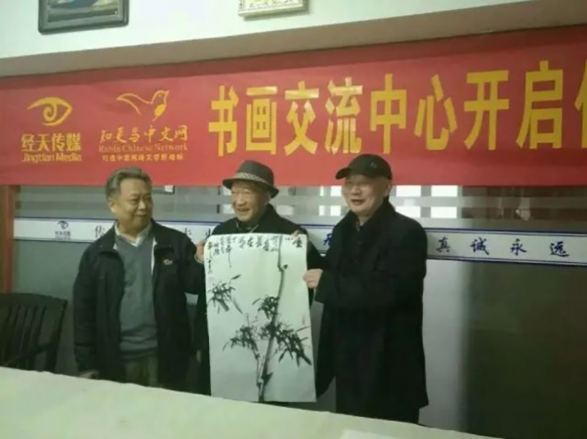 正值北京“兩會”,春風(fēng)送暖,陽光(guāng)和煦,書(shū)畫(huà)家們激情振奮,揮毫潑墨,如(rú)餘家林的書(shū)法,陳欽庭的花鳥畫(huà)、張宜克的花鳥、潘克強的國(guó)畫(huà)等一幅幅書(shū)畫(huà)作品,精彩紛呈,令人(rén)眼睛一亮。特别是陳欽庭以高齡之身(shēn),認真寫字作畫(huà),使在場人(rén)士無不感動。中央文史館書(shū)畫(huà)院安徽分(fēn)院秘書(shū)長祁元,以及多位書(shū)畫(huà)愛好者,經天傳媒部分(fēn)員(yuán)工(gōng),現場觀賞了書(shū)畫(huà)家的創作風(fēng)采。