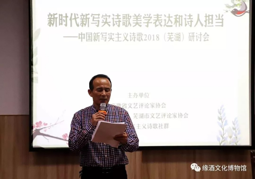 4月21日(rì),由安徽省文藝評論家協會、蕪湖市作家協會、蕪湖市文藝評論家協會、中國(guó)新寫實主義詩歌社群聯合主辦的以“新時代新寫實詩歌美學表達和詩人(rén)擔當”爲主題的中國(guó)新寫實主義詩歌2018研討(tǎo)會,在蕪湖成功舉辦。會議(yì)由詩人(rén)、安徽省經天文化傳媒有限公司董事(shì)長江文波主持。會議(yì)圍繞新時代詩歌美學表達和詩人(rén)擔當的主旨,進行了熱(rè)烈研討(tǎo)。