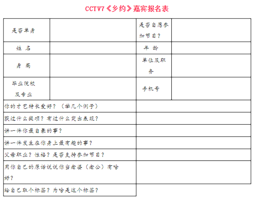 所有嘉賓的學曆、形象和語言表達能力沒有限制,但(dàn)要求單身(shēn),海選當天能到合肥,由中央電視台導演統一遠(yuǎn)程(QQ視頻)一對一篩選,合格的成爲節目嘉賓,參加節目錄制,其餘報名者可(kě)作爲現場觀衆。