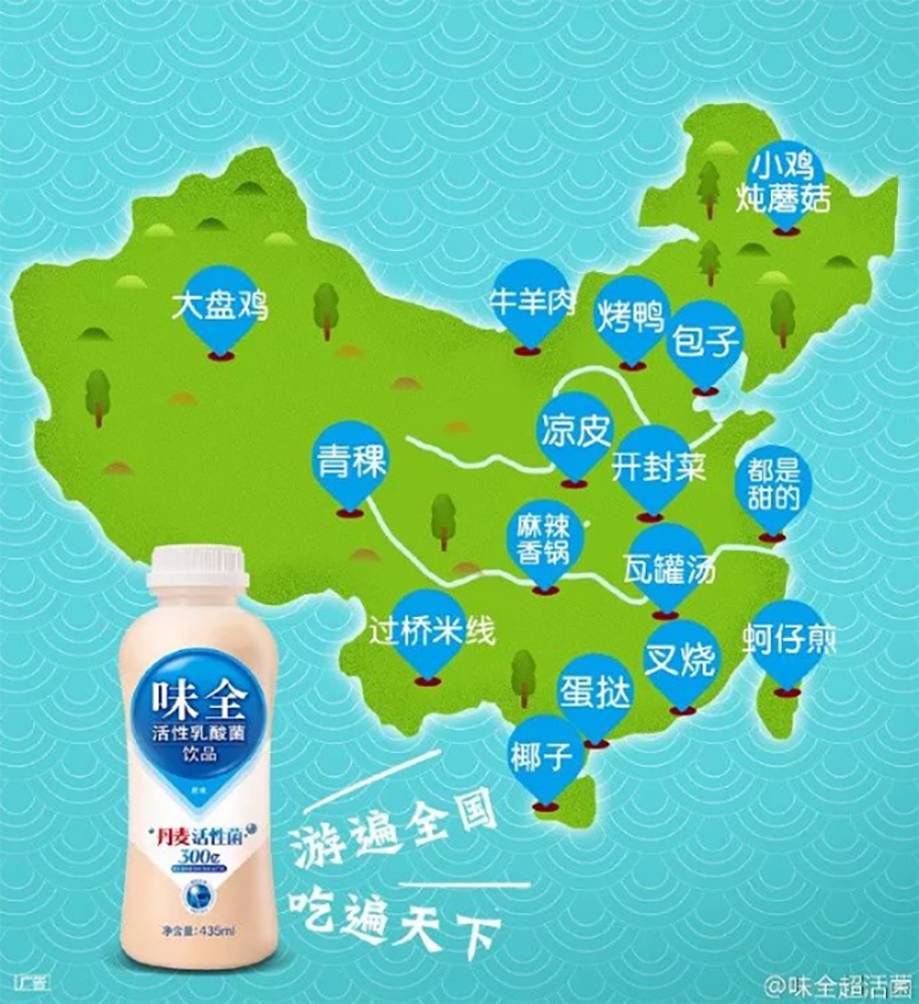 據說(shuō)有90%的吃(chī)貨,是根據這張圖決定長假去(qù)哪兒旅遊的,所以說(shuō)味全這則海報真的是很體(tǐ)貼了,完全抓住吃(chī)貨的旅行心理(lǐ),去(qù)哪兒玩不重要,重要的是吃(chī)什麽!