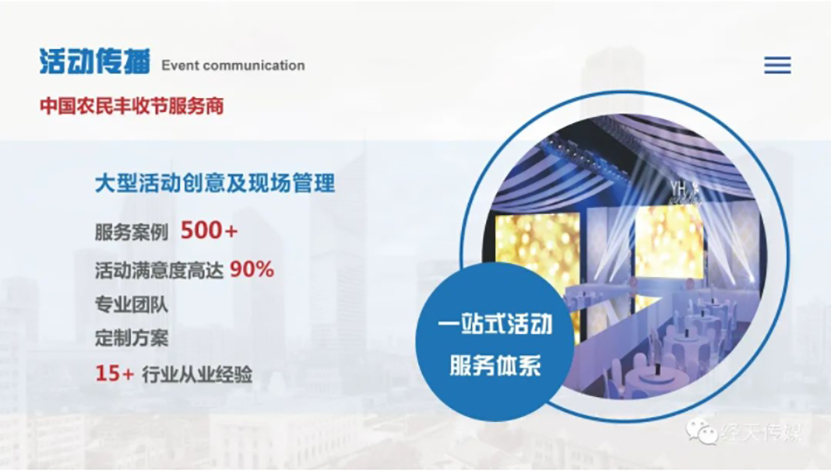 【頭條資訊】 淮南(nán)市2022年(nián)中國(guó)農民(mín)豐收節成功舉辦 1. 9月22日(rì),淮南(nán)市2022年(nián)中國(guó)農民(mín)豐收節在淮南(nán)謝家集區西商農商城(chéng)隆重舉行。淮南(nán)市委副書(shū)記汪謙慎、淮南(nán)市人(rén)大(dà)常委會副主任夏智明、淮南(nán)市政協副主席李大(dà)松,中共淮南(nán)市委農辦主任、淮南(nán)市農業農村局黨組書(shū)記、局長李豔景,淮南(nán)市謝家集區區委書(shū)記陳海濤、區長陳亞東等領導出席開幕式及有關展覽展示活動。 淮南(nán)市謝家集區人(rén)民(mín)政府區長陳亞東緻辭 淮南(nán)市農業農村局黨組書(shū)記、局長李豔景講話(huà) 淮南(nán)市2022年(nián)中國(guó)農民(mín)豐收節以“五彩淮南(nán)慶豐收,農商彙聚迎盛會”爲主題,由中共淮南(nán)市委農辦、淮南(nán)市農村農業局、淮南(nán)市鄉村振興局、淮南(nán)市商務局、淮南(nán)市供銷社、淮南(nán)市謝家集區人(rén)民(mín)政府聯合主辦,中共謝家集區委農辦、謝家集區農業農村水利局、謝家集區鄉村振興局、謝家集區商務投資促進局、謝家集區文化和旅遊局、謝家集區婦女(nǚ)聯合會、共青團謝家集區委員(yuán)會、謝家集區唐山(shān)鎮人(rén)民(mín)政府承辦,淮南(nán)西商農商城(chéng)具體(tǐ)執行。 安徽省經天文化傳媒有限公司全程策劃了本次活動。 2. 本屆農民(mín)豐收節充分(fēn)展示淮南(nán)農民(mín)“慶豐收,迎盛會”的喜悅心情,營造全面推進鄉村振興、加快(kuài)農業農村現代化的濃厚氛圍。整場活動分(fēn)爲開幕式、文藝表演、淮南(nán)市名特優農副産品展示展銷會、鄉村振興美食展、鄉村振興田園直播間、鄉村振興智慧農機(jī)農具展、農産品曬秋展示等分(fēn)項活動,共設标準展位68個,空地展出面積1000平方米,重點展現淮南(nán)市及謝家集區歡慶豐收的絢麗畫(huà)面,展示新農民(mín)新形象、新農業新成果、新農村新生(shēng)活的盛世圖景。 開幕式文藝表演 農産品展示展銷會 智慧農機(jī)農具展 Bask in autumn 曬秋 農産品曬秋展示 3. 淮南(nán)是中國(guó)古代百科(kē)全書(shū)《淮南(nán)子》的誕生(shēng)地,是華夏美食豆腐的發明地,地處淮河之濱,素有“中州咽喉,江南(nán)屏障”、“五彩淮南(nán)”之稱,是沿淮城(chéng)市群的重要節點,合肥都(dōu)市圈核心城(chéng)市。新時代的淮南(nán)是創新、創業的沃土(tǔ),淮南(nán)市創新的“農業生(shēng)産大(dà)托管”成爲全國(guó)農業改革新亮點,農業農村部以正式文件(jiàn)向全國(guó)推廣,并給予“全國(guó)托管看安徽,安徽托管看淮南(nán)”的高度評價,安徽向21個産糧大(dà)縣推廣淮南(nán)農業大(dà)托管的先進經驗,淮南(nán)的創新也登上了中央改革辦的專報。 自(zì)2018年(nián)設立“中國(guó)農民(mín)豐收節”以來(lái),今年(nián)是第五個中國(guó)農民(mín)豐收節,通過會+展,豐收節的慶祝活動内容越來(lái)越豐富,農民(mín)的參與度越來(lái)越廣,基層覆蓋面越來(lái)越大(dà),節慶文化的韻味越來(lái)越濃,農民(mín)豐收節已經成爲展示“三農”發展最新成果、傳承優秀農耕文化、全面推進鄉村振興的重要窗(chuāng)口。 4. 經天傳媒從(cóng)組建活動籌備團隊到活動執行曆時近1個月,堅持“務實、簡約、喜慶、共享”的辦會原則,同各主辦方、承辦方、執行單位淮南(nán)西商農商城(chéng)等單位深度溝通協調,實現了從(cóng)策劃創意到活動執行全過程參與,爲活動的成功主辦付出了辛勤努力,得(de)到了主辦方和承辦方的一緻認可(kě)。2022年(nián)是經天傳媒第二次參加中國(guó)農民(mín)豐收節慶祝活動的策劃和執行,這是繼2021年(nián)在安徽蕪湖市灣沚區成功策劃執行中國(guó)農民(mín)豐收節安徽主場活動的又一傾情力作。 (淮南(nán)市2022年(nián)中國(guó)農民(mín)豐收節圓滿結束 經天傳媒在場員(yuán)工(gōng)合影(yǐng)留念) 供稿 方乾奪 編輯設計(jì) 尹蕊蕊 審稿 夢鴿 經天傳媒 —— 隻有專注 才能做的更好